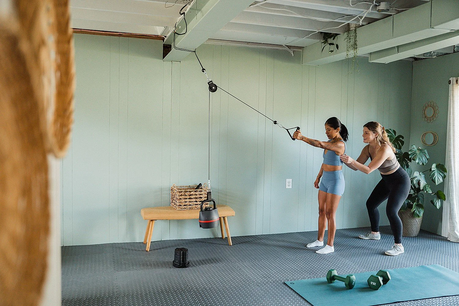 Her studio space is painted in a calming shade of green and the various house plants scattered throughout the corners and vining up the walls make it feel fresh and alive. Though it is a small space, she has it set up in a way that there is plenty of room to move.  All of the exercises I have learned from Erin can be done at home or adapted to my home space which is important for a stay-at-home mom like myself.