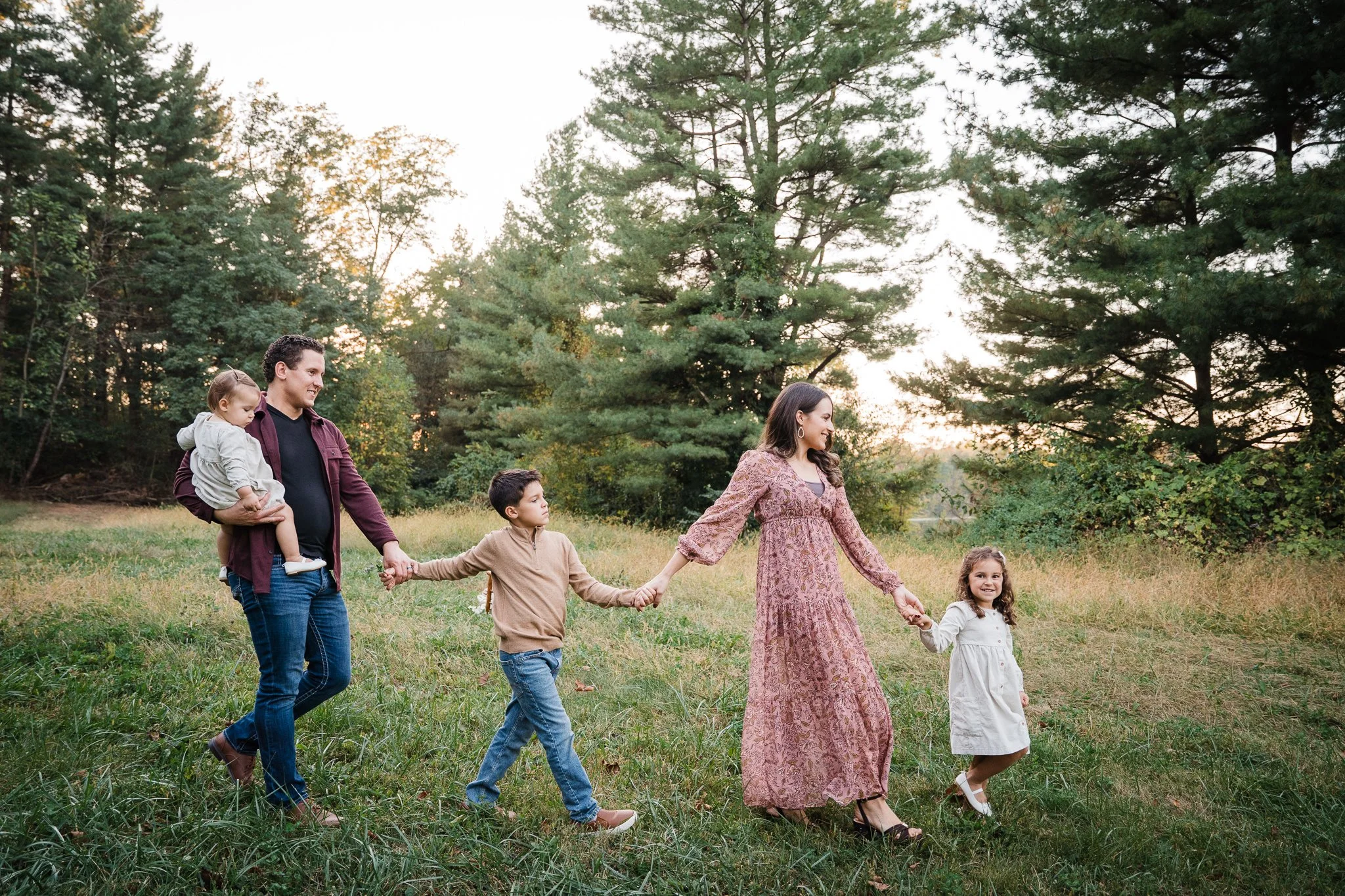 Coordinate vs. Match: I recommend you choose a color palette (2-4 colors) and mix and match patterns with solids instead of having everyone wear matching outfits or solids. For example if someone wears a floral dress, try pulling various colors from the dress for the outfits of other family members. Try to vary the textures and choose small, subtle patterns over large ones. As a general rule of thumb I often tell families to figure out what mom will wear first and then base the other outfits around hers.