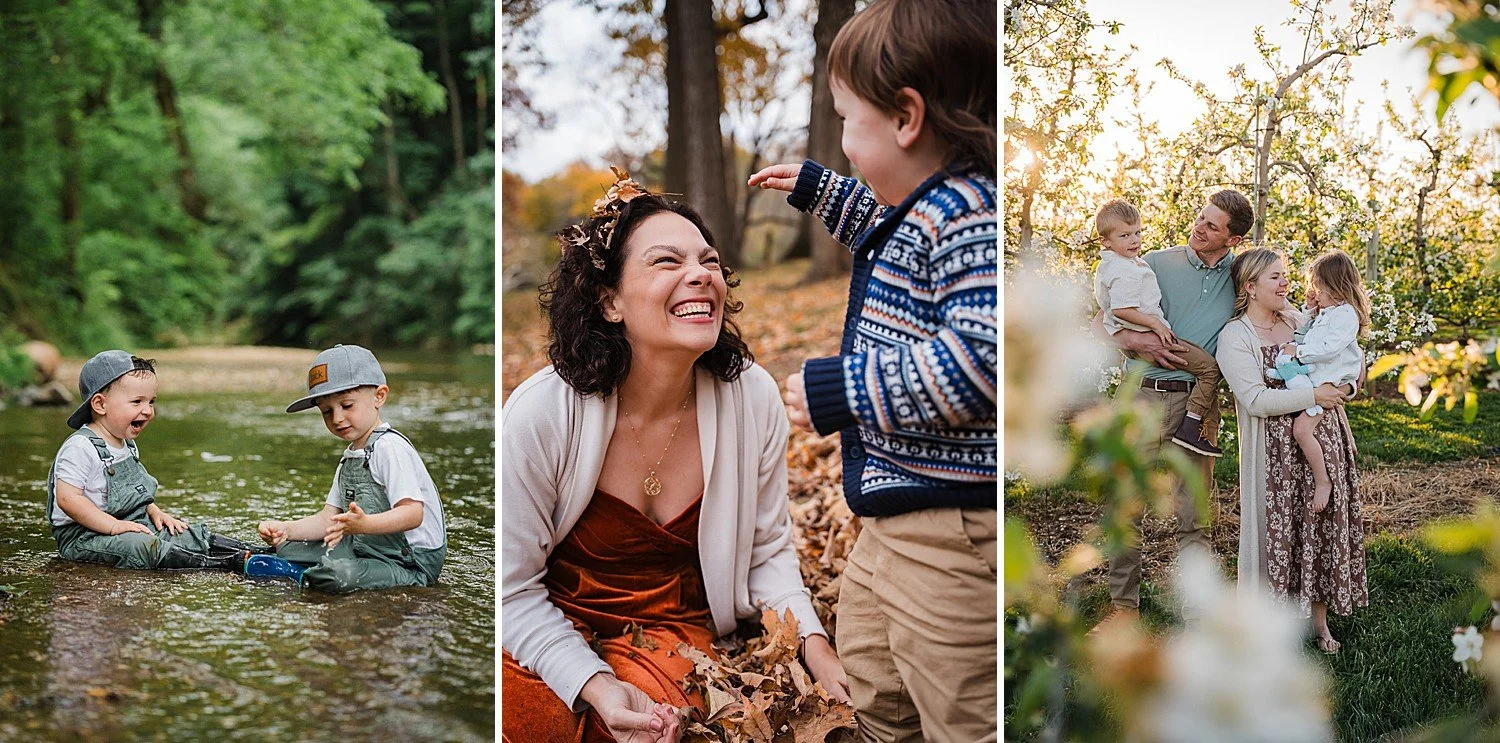 Dress for the Season & Location: For a spring outdoor session where the location typically has a lots of greens and white and light pink flowers it might be a good idea to go with a soft neutral or pastel color palette whereas a fall session might call for more deep bold colors and layers like scarves, sweaters and tights. Similarly for in home newborn sessions I typically recommend a softer, lighter color palette. Of course none of these are hard and fast rules; wear what makes you feel comfortable and what you look good in!
